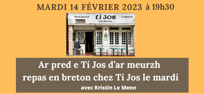 Dalc’het e vo pred kentañ ar bloavezh 2023 d’ar meurzh 10 a viz Geñver da 19°30 e Ti Jos 30 straed Delambre Pariz 14° – Metro Edgar Quinet pe Vavin.