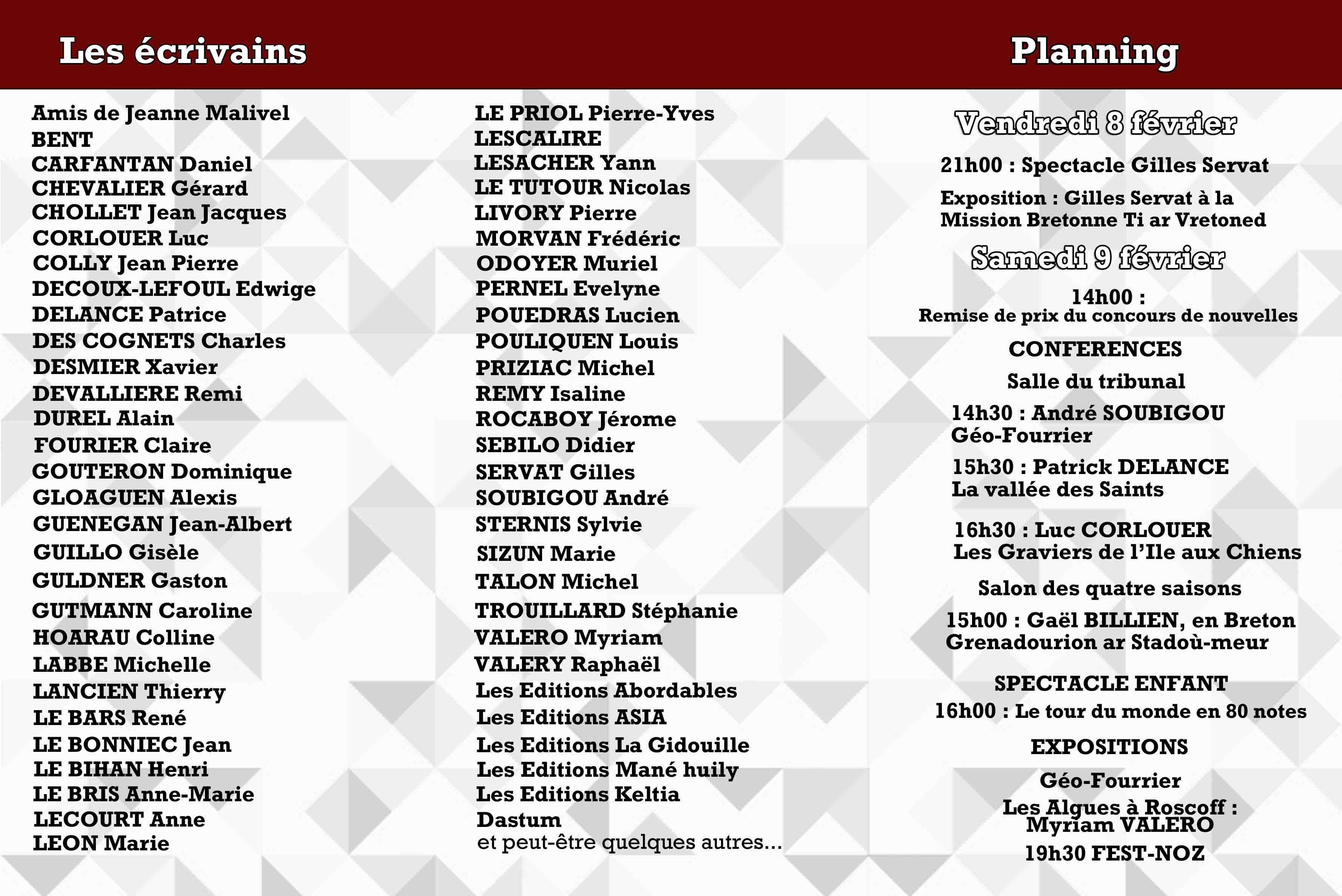 Le Salon des écrivains bretons à Paris, appelé aussi Salon « Lire la Bretagne », aura lieu le samedi 9 février à la salle des fêtes de la Mairie du XIVème arrondissement. Il réunira une cinquantaine d’écrivains venus présenter leurs ouvrages et est l’occasion d’assister à des conférences, des expositions, des dédicaces. De grands écrivains font régulièrement le déplacement, cette année c’est Gilles SERVAT l’invité d’honneur.
