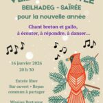 | vendredi 16 | La Mission Bretonne vous convie à une Veillée chantée de Nouvelle Année au 22 rue Delambre 75014 Paris à partir de 20 h 30. Au programme : chant breton et gallo, à écouter, à répondre, à danser… pour un un moment convivial et de partage autour du chant et des mélodies qui nous habitent. L’entrée est libre. Le repas est partagé : chacune et chacun […] |