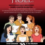| vendredi 20 | 20:30 | C’hoant ho peus kanañ met n’anavezit ket ar pozhioù ? / Envie de chanter en breton même sans savoir le parler ? Roet e vo deoc’h ar pozhioù war al lec’h. / On vous donnera les paroles sur place. Donemat eo ar sonerien. / Les musiciens sont les bienvenus. Deuit da gemer perzh ganeomp en ur evañ ur banne. / Venez vous joindre à nous autour […] |