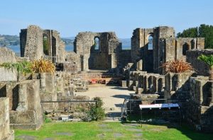 « L’hymne achevé, ils s’engagèrent à même la vaste forêt qui s’étendait sur le rivage et, parcourant le vallon qui de loin leur était apparu, ils y découvrirent un espace entouré de coteaux et de bois, façonné comme le creux d’une fronde. C’était un endroit parfaitement calme, ceint de bois et buissons, roches acérées et hautes collines d’un côté, et de l’autre venant mourir sur la mer et la rivière ».(…) « C’est un lieu extrêmement agréable, exposé au soleil, inaccessible à tous les vents, sauf un peu le vent d’Est ; comme un paradis magnifiquement tourné vers le soleil levant… un jardin orné de fleurs de toutes sortes de couleurs, où récolter les fruits non seulement de la terre mais encore et surtout du ciel » Vie de Saint Guénolé, IXème siècle