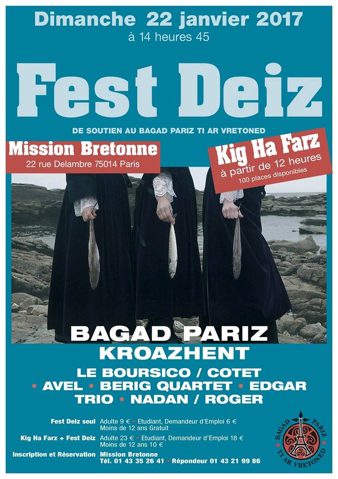 Une tradition : le fest-deiz du bagad Pariz ! Un incontournable avec une ambiance de folie, chaleureuse et conviviale, à l’image du bagad. Une programmation aux petits oignons préparée avec amour par Marcel Lestic et surtout juste avant le fest-deiz, le célèbre kig ha farz, ce pot au feu léonard qui est peut-être la preuve de l’existence de Dieu, et qui réunit 200 convives tour d’un banquet digne d’Astérix.