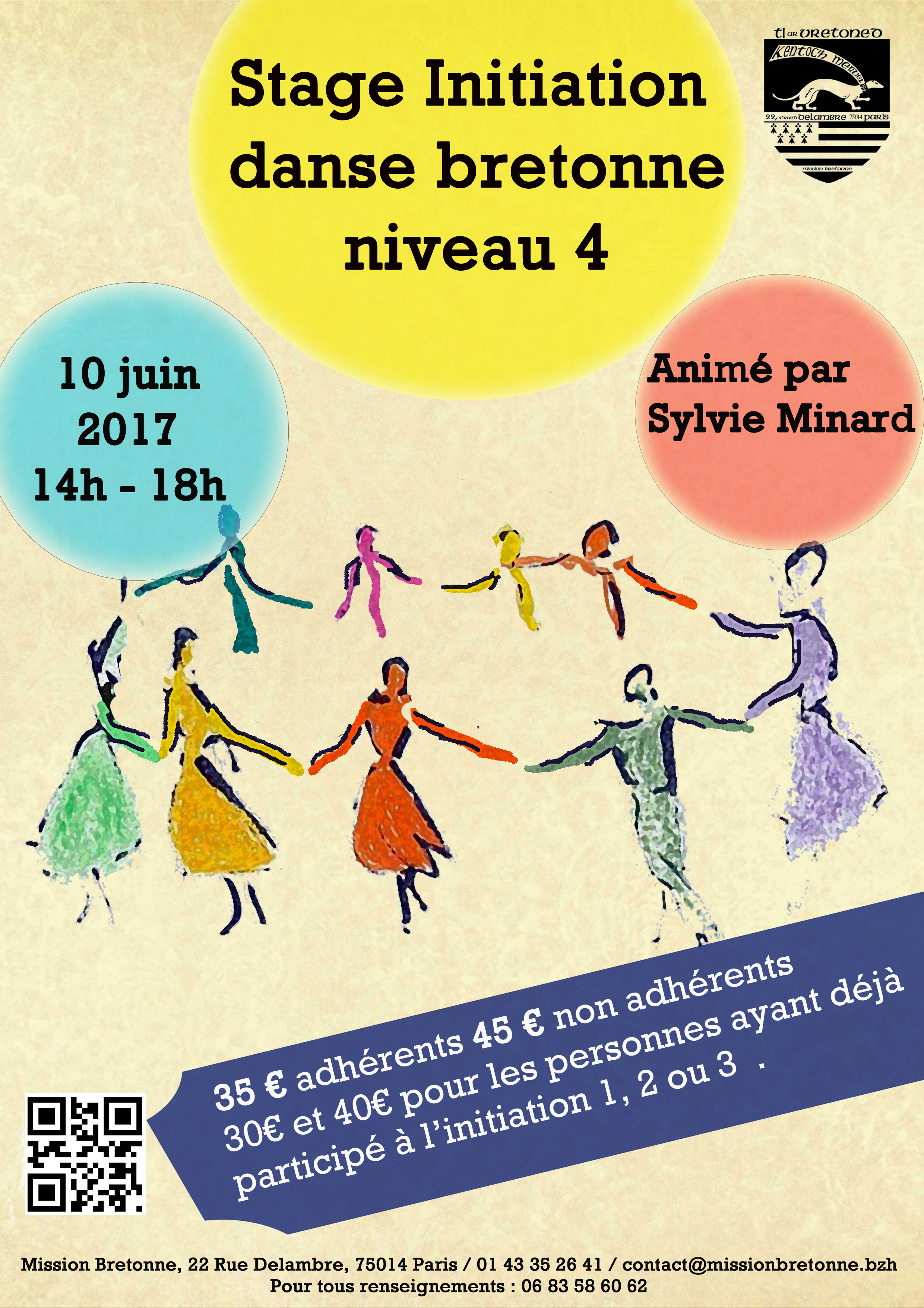Stage animé par Sylvie Minard, qui enseigne la danse bretonne depuis des années à la Mission bretonne. A la tête des Danserien Pariz, elle a porté cette troupe de danse en 1ère catégorie Kendalc’h en quelques années.