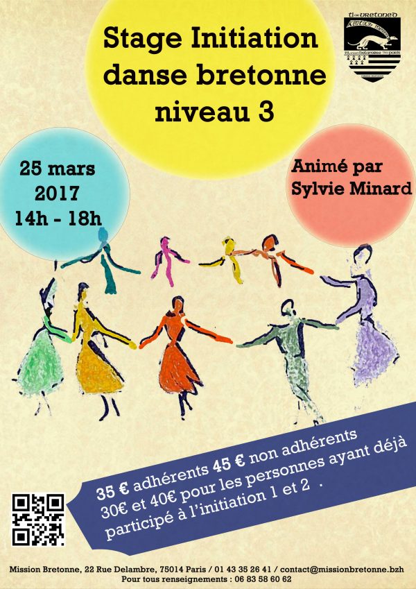 Stage animé par Sylvie Minard, qui enseigne la danse bretonne depuis des années à la Mission bretonne. A la tête des Danserien Pariz, elle a porté cette troupe de danse en 1ère catégorie Kendalc’h en quelques années.