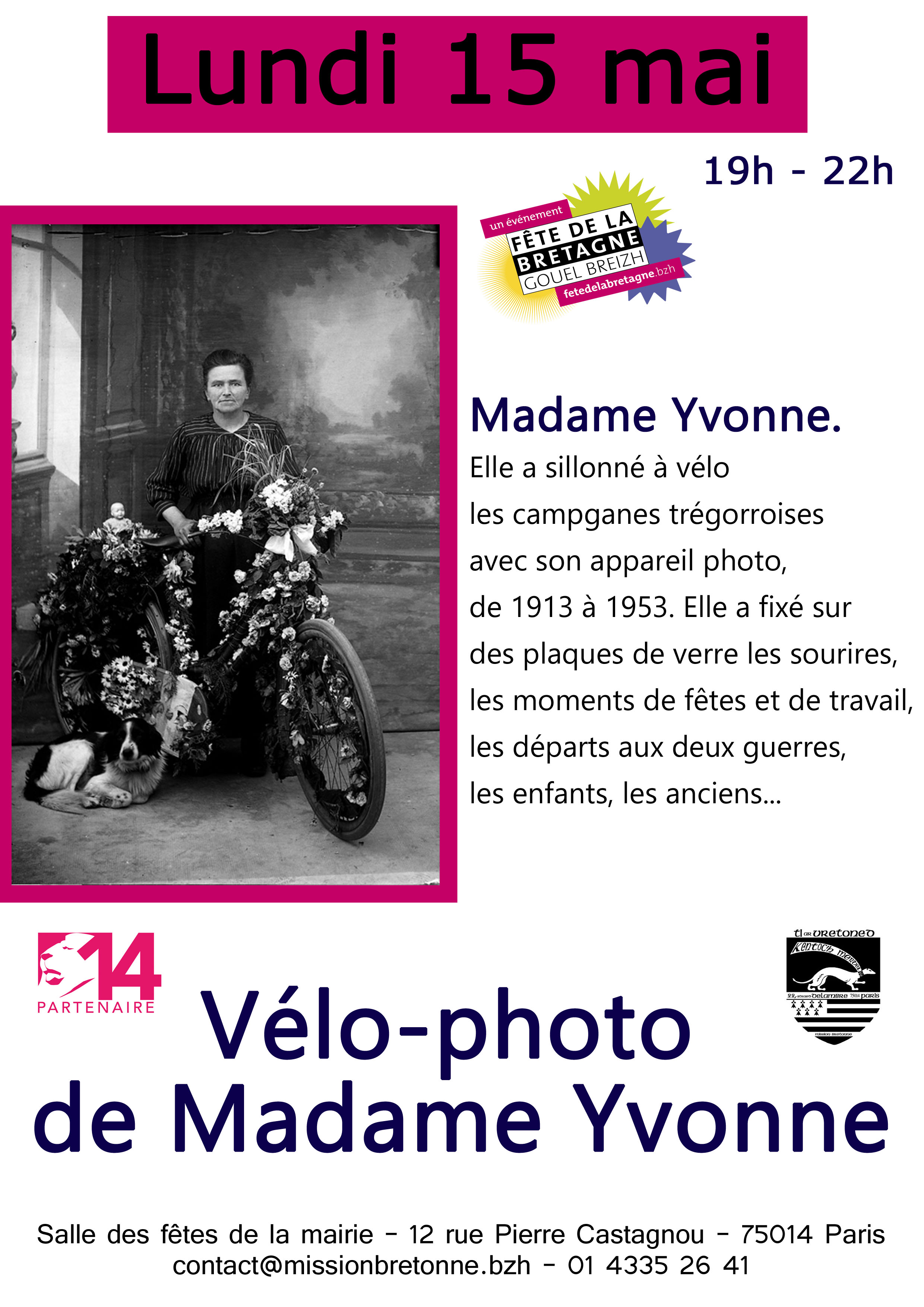 Photographe ambulante, « Madame Yvonne » a sillonné les cantons du Trégor avec son vélo pendant 40 ans. De 1913 à 1952, sur un rayon de 40 kms autour de Plouaret, elle est allée photographier sur demande les enfants, les familles, les mariages, les battages, les fêtes, les communions, les soldats, les morts, jeunes et vieux.