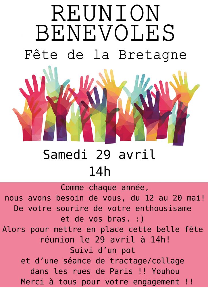 La fête de la Bretagne approche à grands pas, nous avons toujours besoin de bénévoles pour nous aider à rendre ces moments de fête inoubliables. Du collage d’affiches à la décoration de salle, en passant par la cuisine et le bar, nous avons besoin de vous.