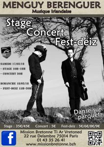 Un stage exceptionnel avec les deux musiciens Erwan Menguy : Flûte traversière en bois et Erwan Bérenguer : Guitare acoustique DADGAD mélodie et accompagnement.