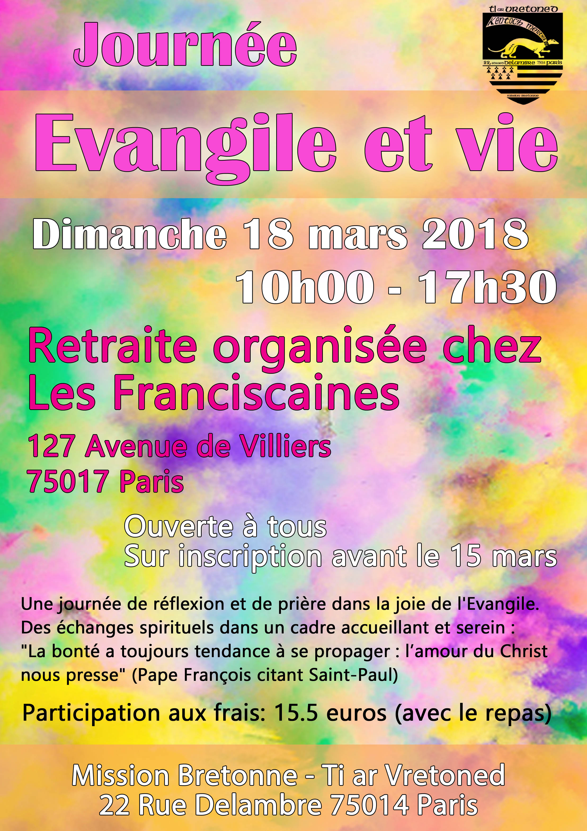 une journée de réflexion et de prière dans la joie de l’Evangile. Des échanges spirituels dans un cadre accueillant et serein: « La bonté a toujours tendance à se propager : l’amour du Christ nous presse » (Pape François citant Saint-Paul)’