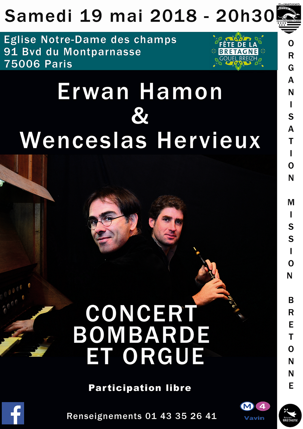 Ils vous feront entendre un répertoire inspiré de mélodies traditionnelles, agrémentés de compositions et d’arrangements propres à la formule « Bombarde et Orgue ».