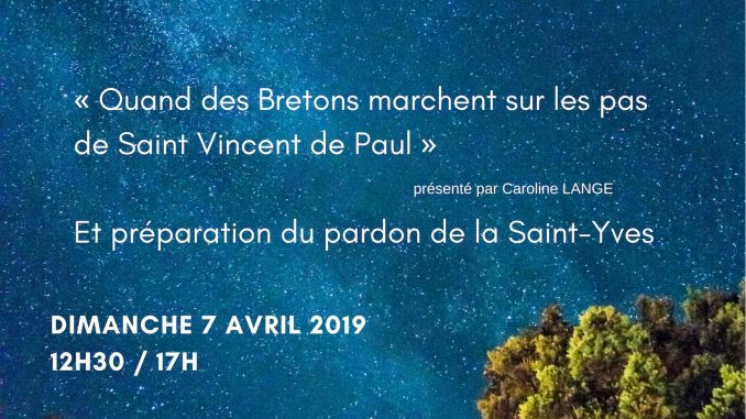 Évangile et Vie dimanche 7 avril 2019 Mission Bretonne Evénements 0 « Quand des Bretons marchent sur les pas de Saint-Vincent de Paul » présenté par Caroline LANGE. Et préparation du pardon de la Saint-Yves du 25 mai. Repas : 8€ sur inscription