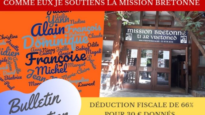Reconnue d’intérêt général, la Mission Bretonne peut émettre des reçus fiscaux pour les dons qu’elle reçoit, ouvrant droit ainsi à une réduction d’impôts des 2/3.