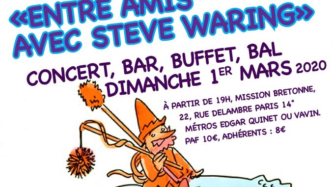 La Mission accueille l’association Le Bourdon dimanche 1 mars 2020 Mission Bretonne Archives actus 0 Entre amis avec Steve Waring Concert, bal Bar, buffet Le dimanche 1er mars à 19h dans les locaux de la Mission, à l’initiative de l’association Le Bourdon. Entrée 10 euros (adhérents de l’association du Bourdon : 8€)