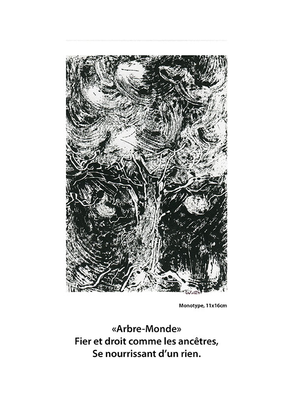 « Promenade au bord du monde » est une méditation sur le cheminement de l’humanité vers sa verticalisation, ou le choix qu’elle fait entre animalité et lumière.