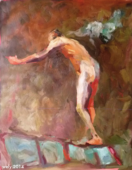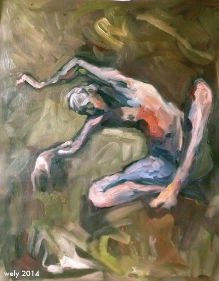 C’est aussi un regard tendre sur les pas que nous faisons dans nos vies, ces pas de danse, parfois harmonieux, gracieux, parfois maladroits ou grotesques.Le mouvement du corps, dans ses expressions est au coeur de ce travail. Il est inspiré par le dessin de modèles en mouvements, et tente de rendre compte au plus près du travail propre à chaque modèle, à leur expression propre, classique et théâtrale ou plus abstraite.