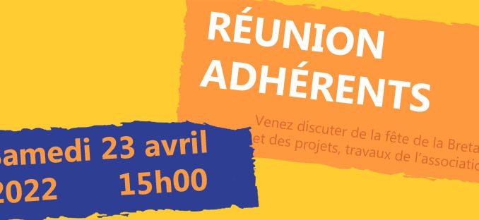 Réunion adhérents samedi 23 avril 2022 Nolwenn Evénements 0 Venez discuter de le fête de la Bretagne et des projets, travaux de l’association. Verre de l’amitié 15h à la Mission Bretonne