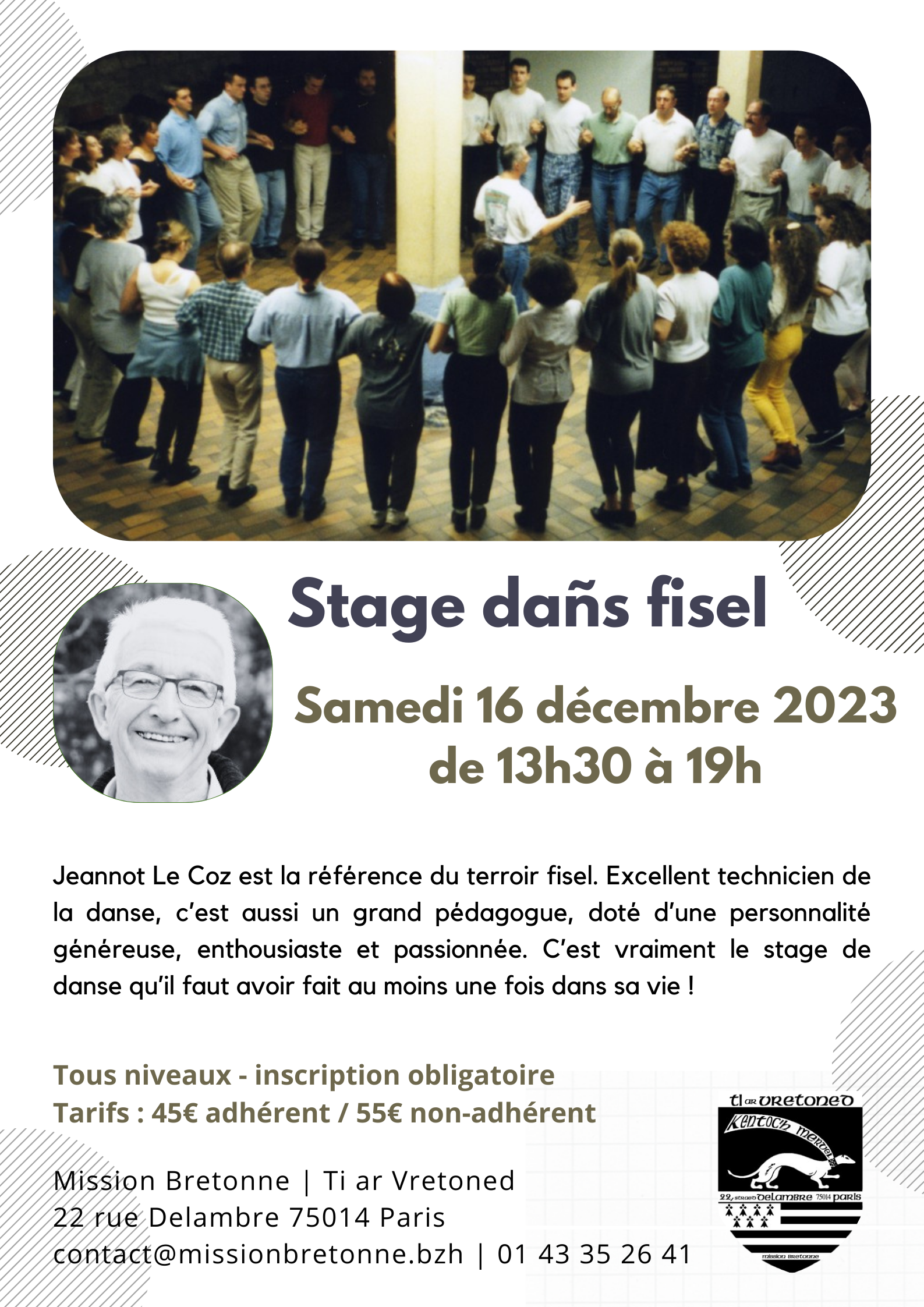 C’est ce que nous vous proposons aujourd’hui, avec ce stage animé par Jeannot Le Coz : Jeannot Le Coz est la référence du terroir fisel, en tant qu’ancien président du cercle de Rostrenen. Excellent technicien de la danse, c’est aussi un grand pédagogue, doté d’une personnalité généreuse, enthousiaste et passionnée. Du reste, Jeannot a récemment été promu Chevalier des Arts et Lettres pour son action.