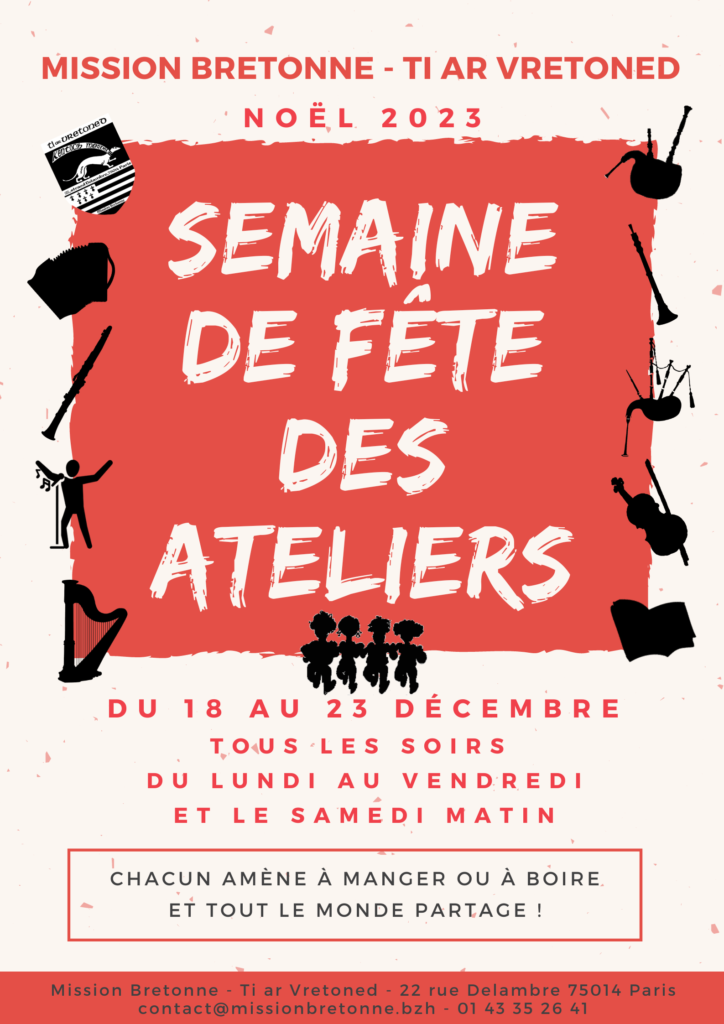Semaine de fête des ateliers du 18 au 23 Décembre ! lundi 18 décembre 2023 Enora Actus, Evénements, Newsletter 0 Chacun amène à manger et à boire, et tout le monde partage ! Tous les soirs du lundi au vendredi et le samedi matin Du 18 au 23 décembre