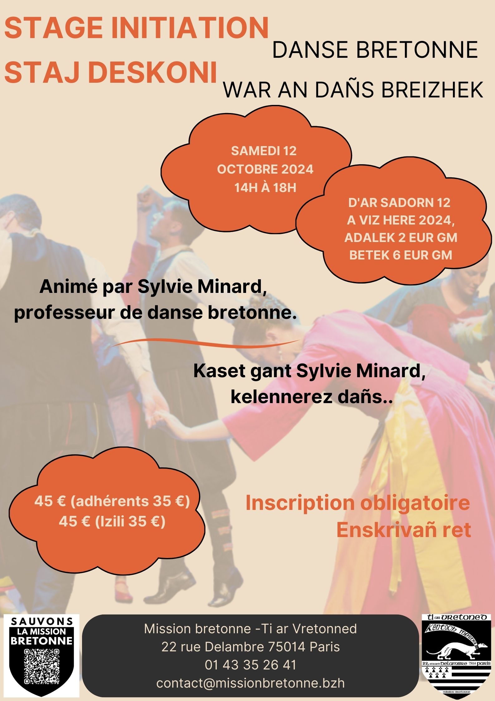 Animé par Sylvie Minard, professeur de danse bretonne. Pour ne plus faire tapisserie pendant les festoù-noz…et pour nos amis musiciens qui souhaiteraient étoffer leur pratique avec la danse …Un stage pour découvrir les danses les plus courantes, de l’an dro à la gavotte, de la dañs tro (en rond) à la quadrette : la danse bretonne est riche de ses dizaines de terroirs de danse !