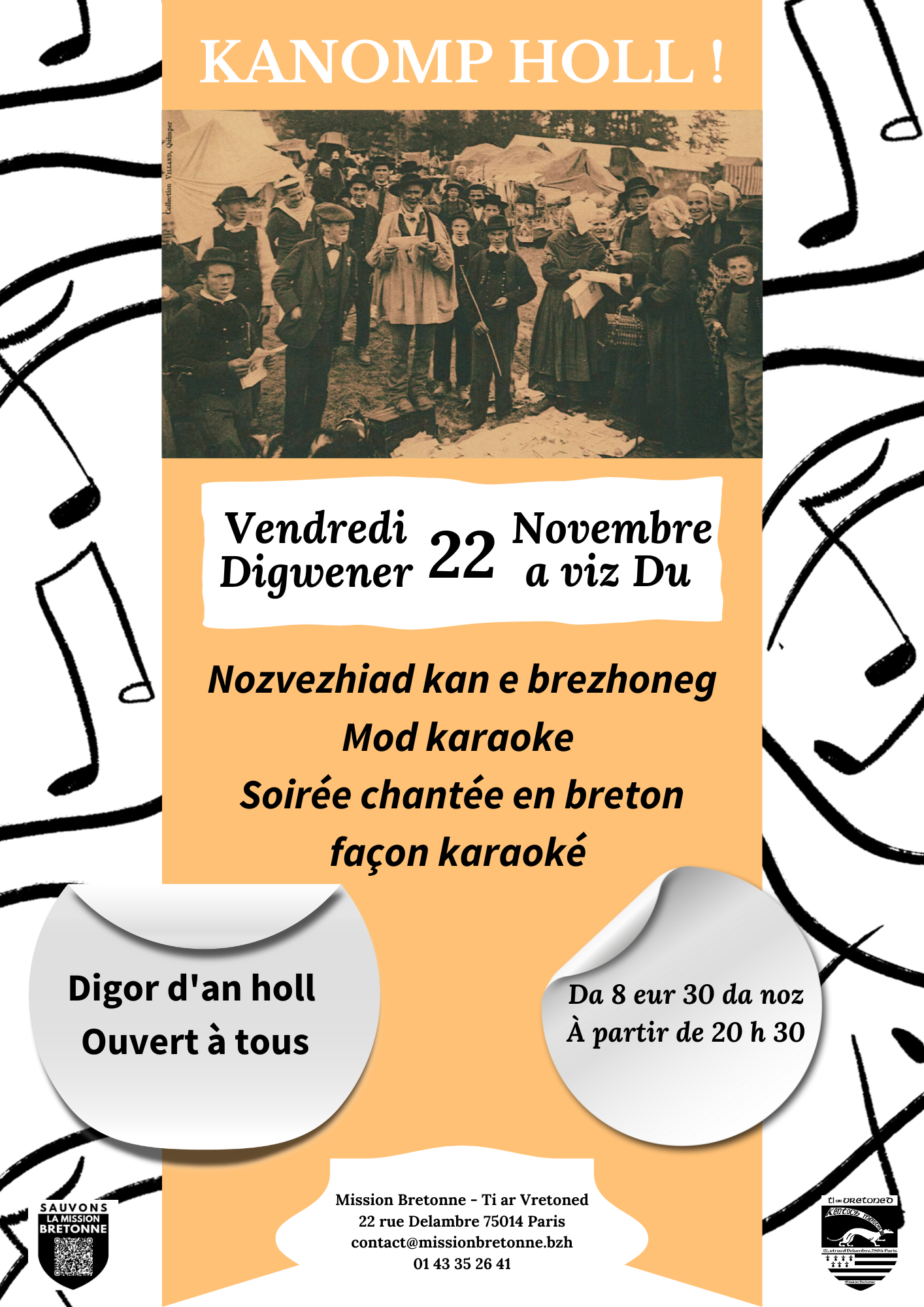Roet e vo deoc’h ar pozhioù war al lec’h. / On vous donnera les paroles sur place.