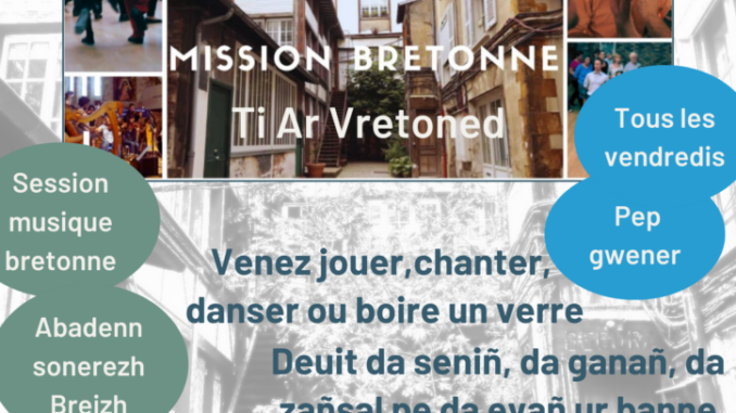 Kit davedomp da lid sevenadur hor bro ar bloaz-mañ adarre !Peb gwener da 8 eur 30 goude merenn e c’helloc’h adkavout spered Breizh e kreiz kêr-Bariz.