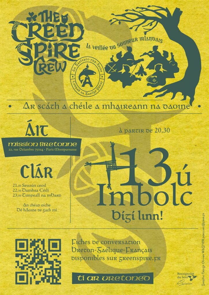 Veillée du sonneur irlandais, animée par The Green Spire et Conradh na Gaeilge Pháras – An Ghaeltach-sur-Seine, la ligue gaélique à Paris, en collaboration avec la Mission Bretonne Ti ar Vretoned