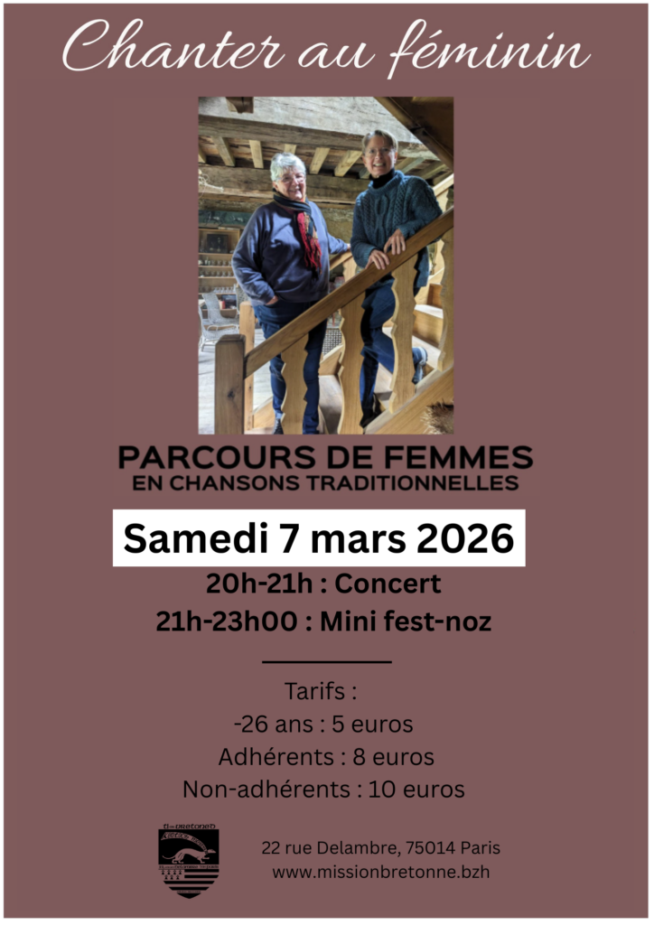 Ayant à leur répertoire bon nombre de chansons traditionnelles mettant en scène des femmes, aux différents âges de leur vie, Marie-Annick Roussel et Béatrice Cabedoce se sont interrogées sur ce que ces chansons disaient de leur parcours, de leurs rêves, de leurs luttes. Une vingtaine de chants traditionnels (de Bretagne et d’ailleurs) évoqueront le vécu de ces jeunes filles, de ces épouses, de ces mères, dans un monde dominé par le masculin mais qu’elles se réapproprient à leur manière.