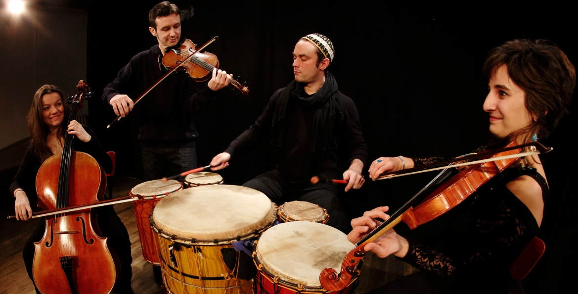 Le duo de violon formé par Jonathan DOUR et Floriane LE POTTIER (champion de Bretagne duo libre 2011) s’est grandi en accueillant Mathilde CHEVREL (Violoncelle) et Antonin VOLSON aux percussions en 2012. Inspiré a la fois des violoneux traditionnels (Bretagne, France, Suède…), des sonorités du moyen orient, mais aussi parfois des harmonies classique ou des riffs de rock… un bouillon de culture né en centre-bretagne, aboutissement de nombreuses rencontres et voyages…
