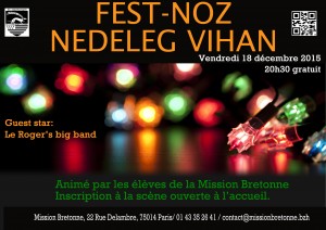 Un mini fest-noz avant Noël animé par les élèves de la Mission bretonne. Inscription à la scène ouverte auprès de Camille (à l’accueil)ou de Stéphane (par retour de ce mail). Avec en guest star :