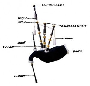 La cornemuse d’Ecosse est une grande cornemuse à trois bourdons, utilisée en particulier dans les pipes bands et les bagadoù.