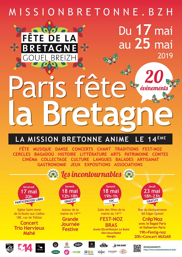 La Fête de la Bretagne à Paris 14ème est organisée par la Mission Bretonne, avec le soutien de la Région Bretagne et de la Mairie du 14ème.