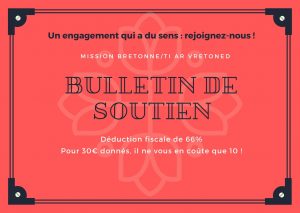 Vente de billets en ligneVous pouvez également nous adresser un chèque du montant de votre choix, libellé à l’ordre de la Mission Bretonne.