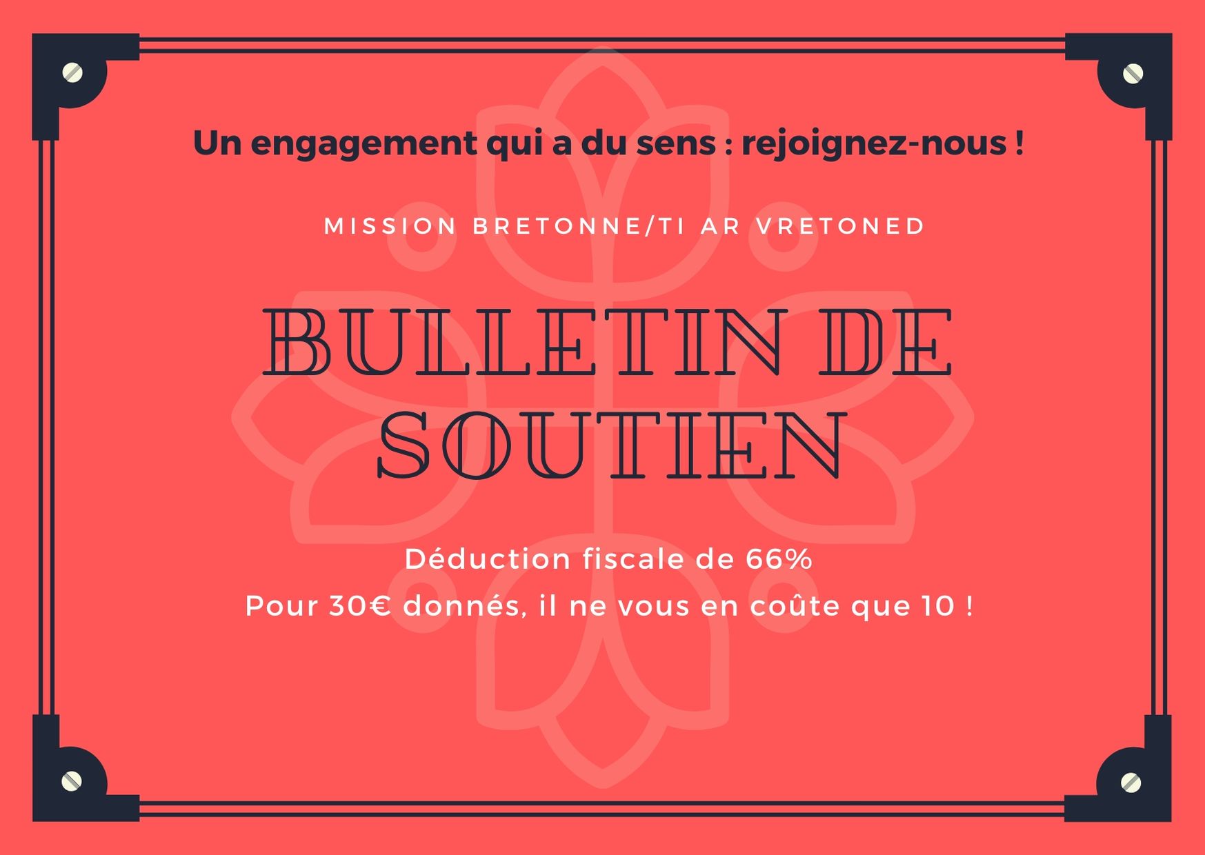 Reconnue d’intérêt général, la Mission Bretonne peut émettre des reçus fiscaux pour les dons qu’elle reçoit, ouvrant droit ainsi à une réduction d’impôts des 2/3.